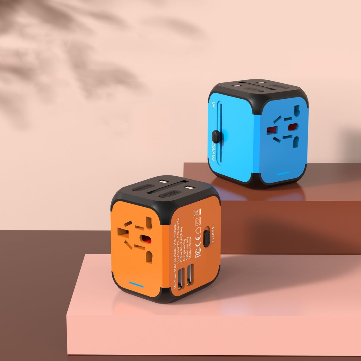Our travel adapter is made from robust ABS for global connectivity, covering over 150 countries with US/EU/UK/AUS plugs. Featuring dual USB ports, it charges multiple devices simultaneously, including phones, tablets, and laptops. This adapter supports grounded and ungrounded devices, simplifying international charging. Its compact, changeable color design makes it a travel essential, solving charging troubles across continents. Ideal for sharing, it's perfect for families and friends on the go.